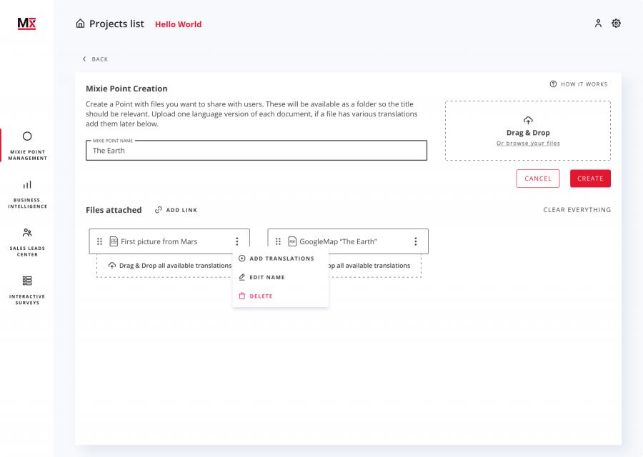 We broke down all the functionality into much smaller parts once we had a tested solution that gave us good results: A drag & drop as a way to upload and group files that were the same but in different languages.