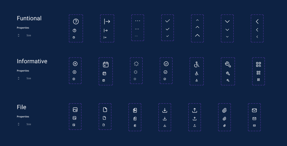 In this process, we created all the necessary components, from buttons to more complex structural sections, along with their potential variations, using the atomic design approach.